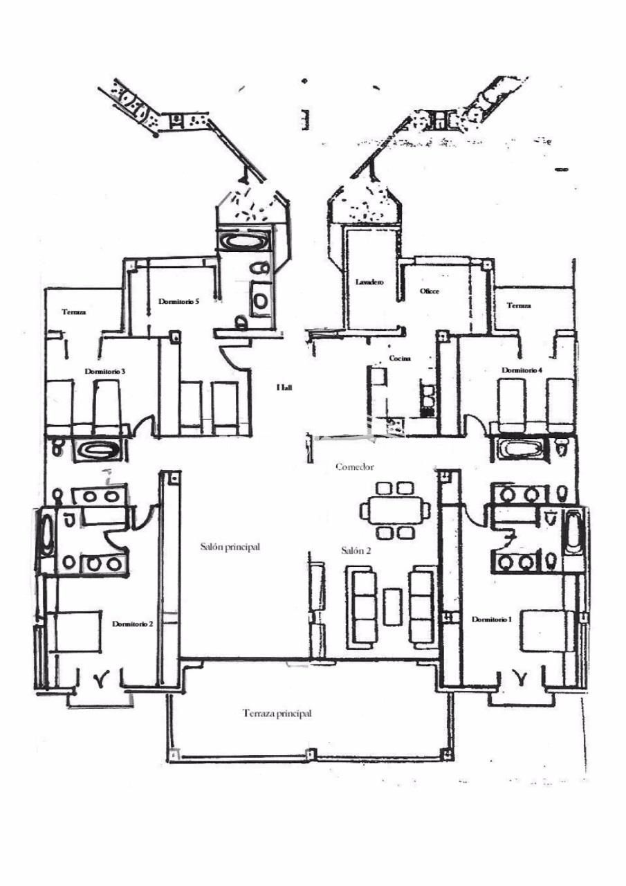 Segunda planta. Exterior. Orientación Sur. Amplio salón – comedor con acceso a magnífica terraza. Cocina con office y lavadero. Cinco dormitorios. Cinco baños completos.