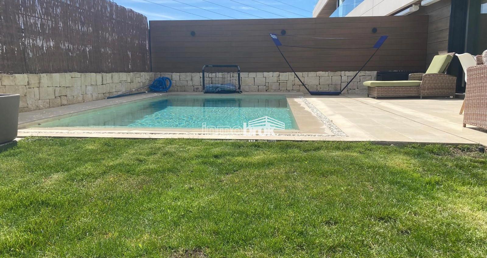 Fantástico bajo con jardín en urbanización de lujo. Vivienda de 195 metros cuadrados. Zona exterior de 127 metros cuadrados. Hall, gran salón comedor con salida al jardín. Cocina abierta totalmente equipada. Tendedero. Amplio dormitorio principal con baño en suite y vestidor. Otro dormitorio con baño en suite. Dos dormitorios más que comparten baño. Piscina privada. Dos plazas de garaje y trastero.