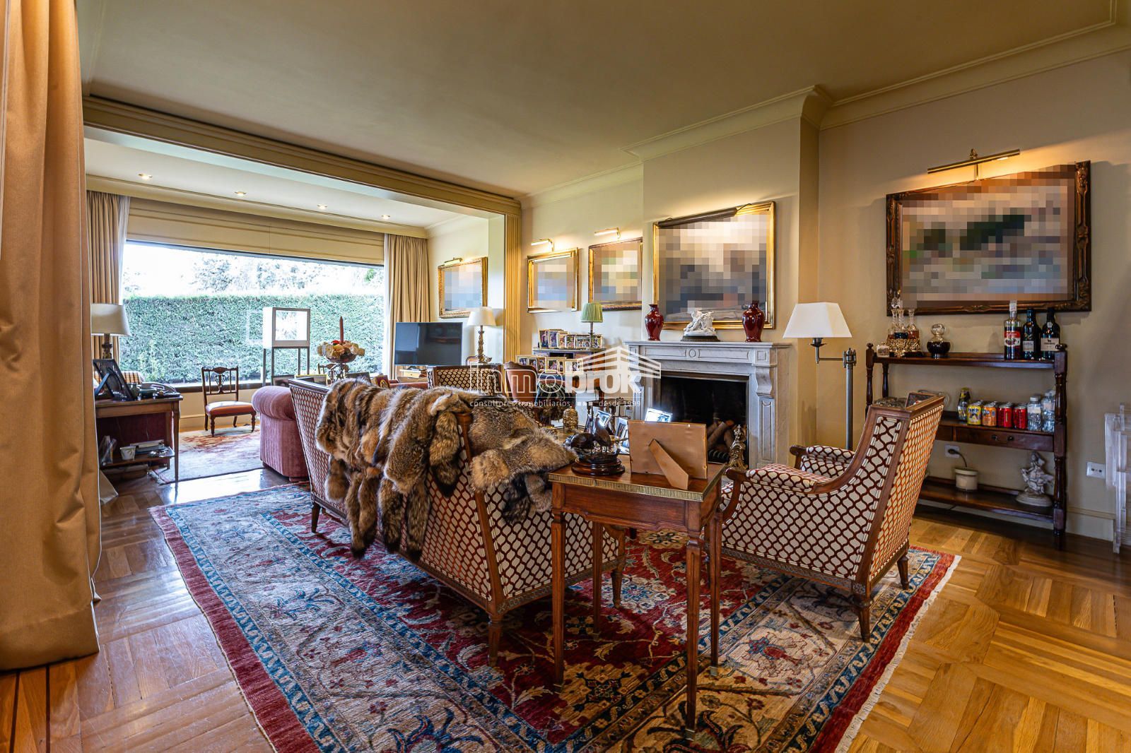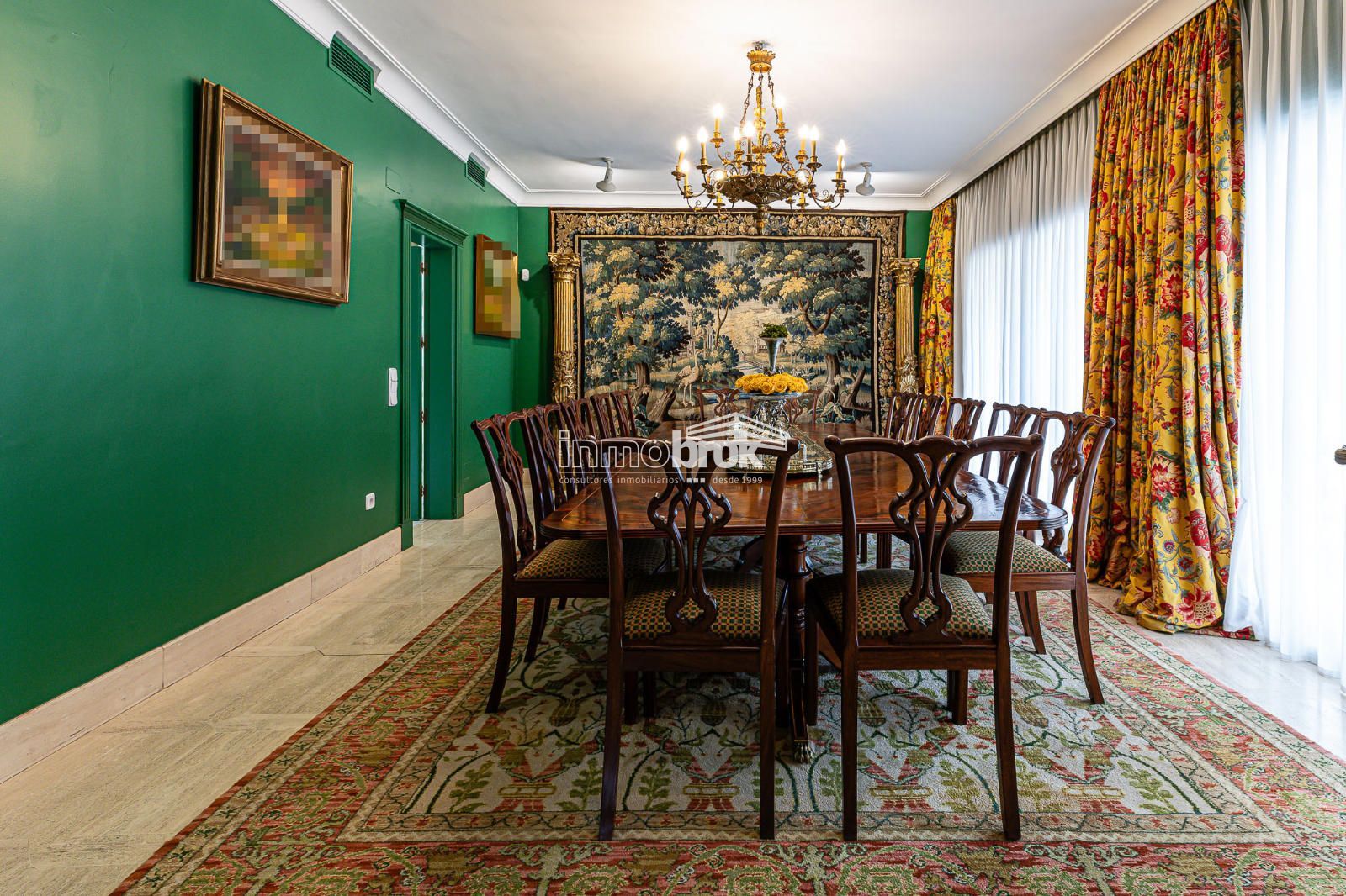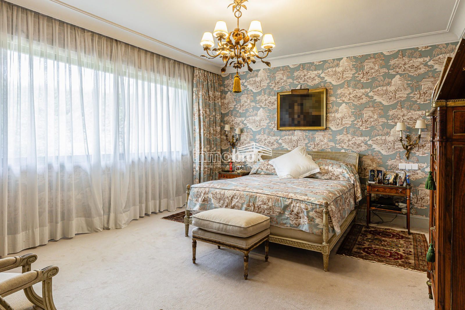Chalet independiente en La Moraleja. Tiene una superficie construida de 748m² sobre una parcela de casi 2.900m² con piscina privada. La vivienda consta de dos plantas. La planta baja se halla distribuida en hall de entrada por donde se accede a dos salones y comedor.  La cocina, equipada con despensa, zona de lavado y comedor de diario, se complementa con un área de servicio que incluye un dormitorio y baño. En esta planta se encuentran 2 habitaciones con baño en suite y zona de estar y vestidor. Además una de ellas cuenta también con despacho. En la primera planta se encuentran otros dos dormitorios con zona de estar , baños en suite, vestidor y salida a terraza.