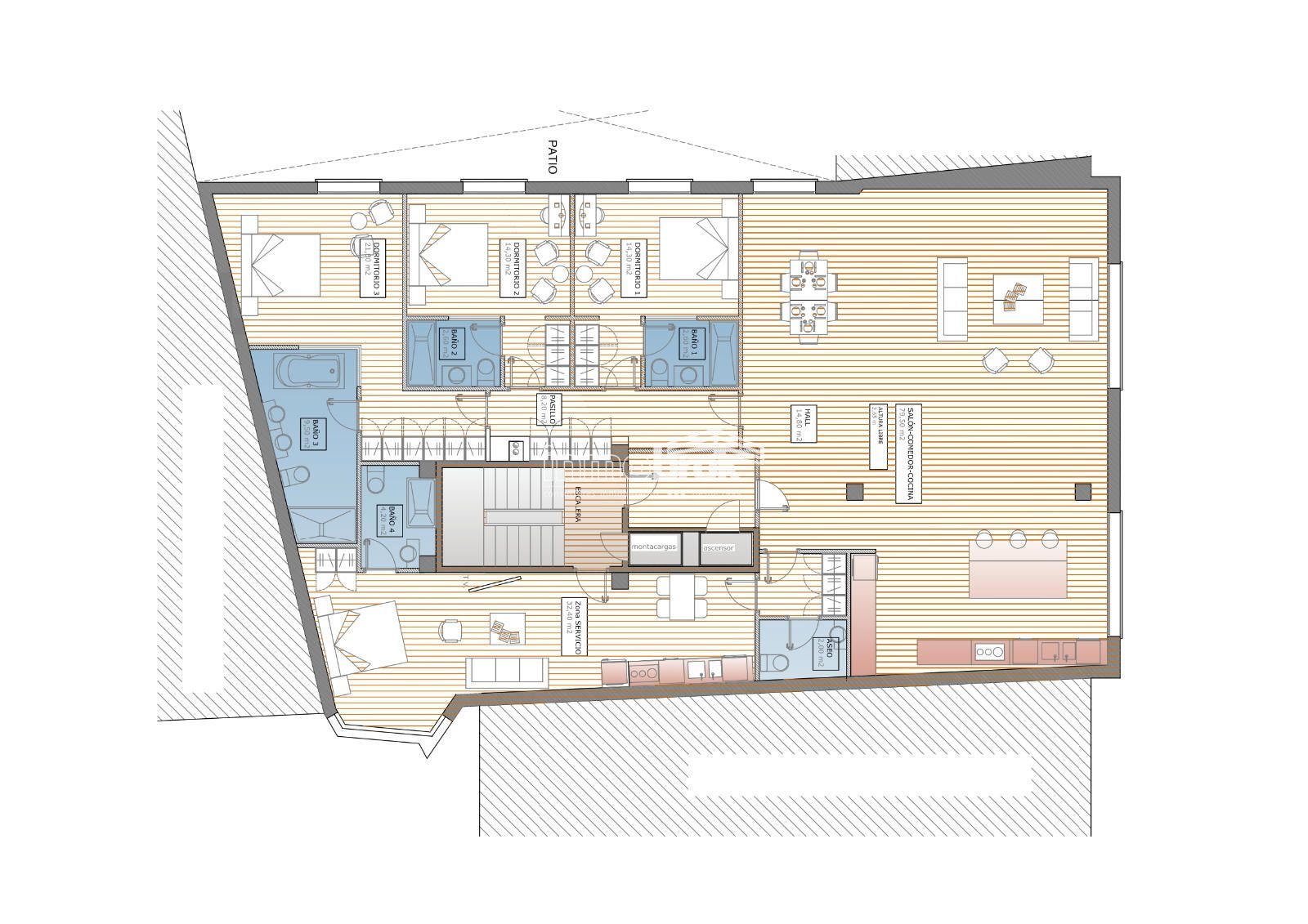 El corazón de la vivienda es un espectacular espacio diáfano de 100 m² que integra salón, comedor y cocina, creando un ambiente sofisticado, luminoso y perfecto para quienes disfrutan de reuniones sociales y vida familiar de alto nivel.