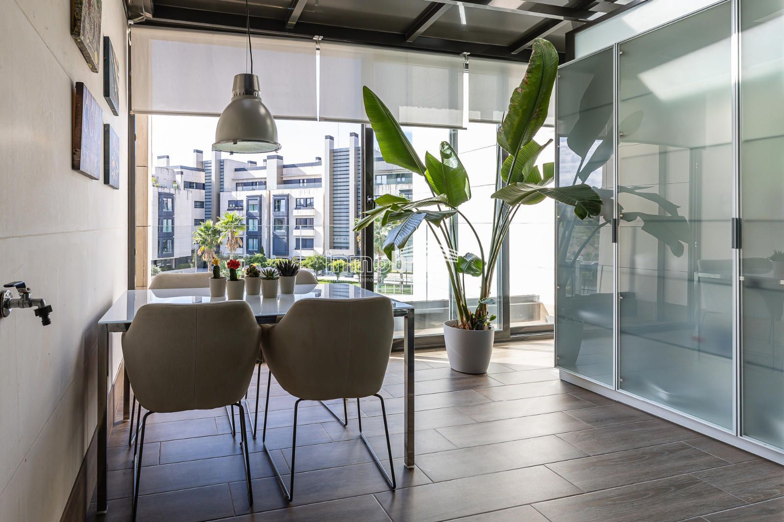 Cocina con zona de office y terraza acristalada . También cuenta con zona de servicio independiente con dormitorio y baño en suite.
