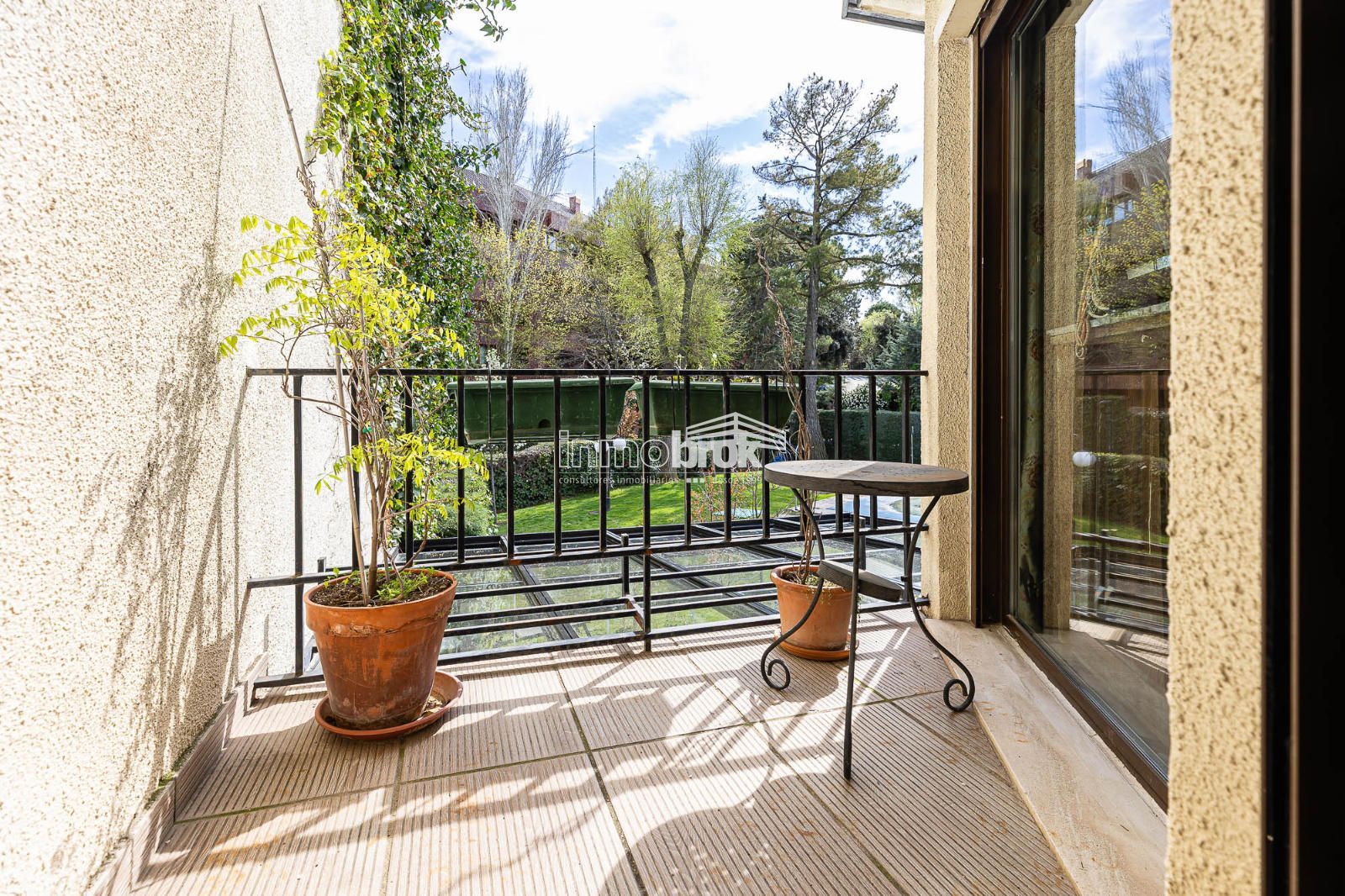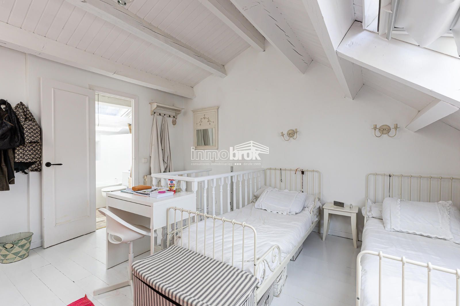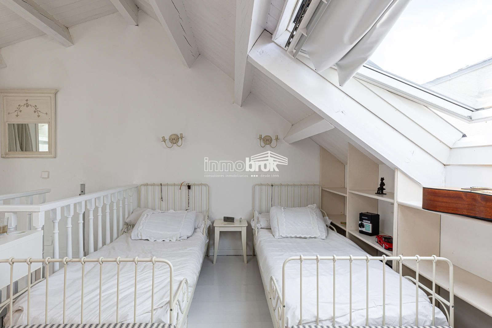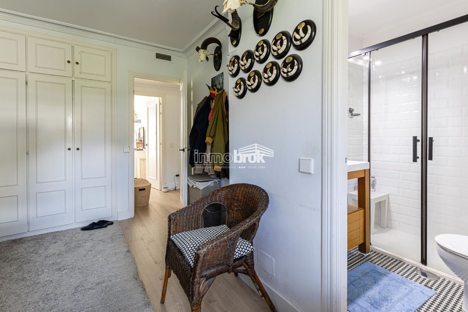 Distribución de la vivienda: • Planta principal: amplio salón con chimenea, despacho-biblioteca, baño de cortesía y gran terraza acristalada abatible en verano con acceso directo a la piscina y jardín privado. • Primera planta: 2 dormitorios en suite (principal con vestidor y terraza). • Segunda planta: buhardilla diáfana con baño completo en suite. • Planta baja: cocina con office, comedor, zona de lavandería, despensas, aseo y posibilidad de habitación de servicio.