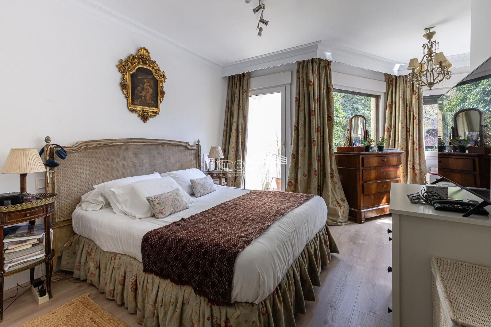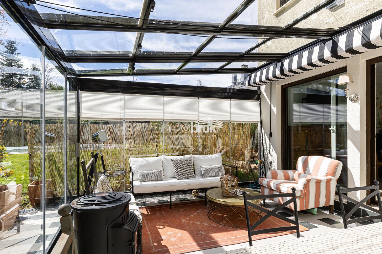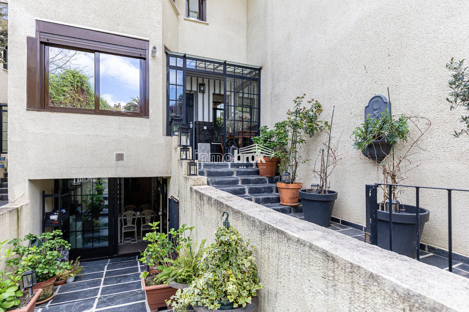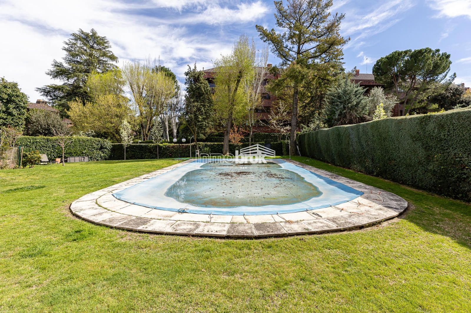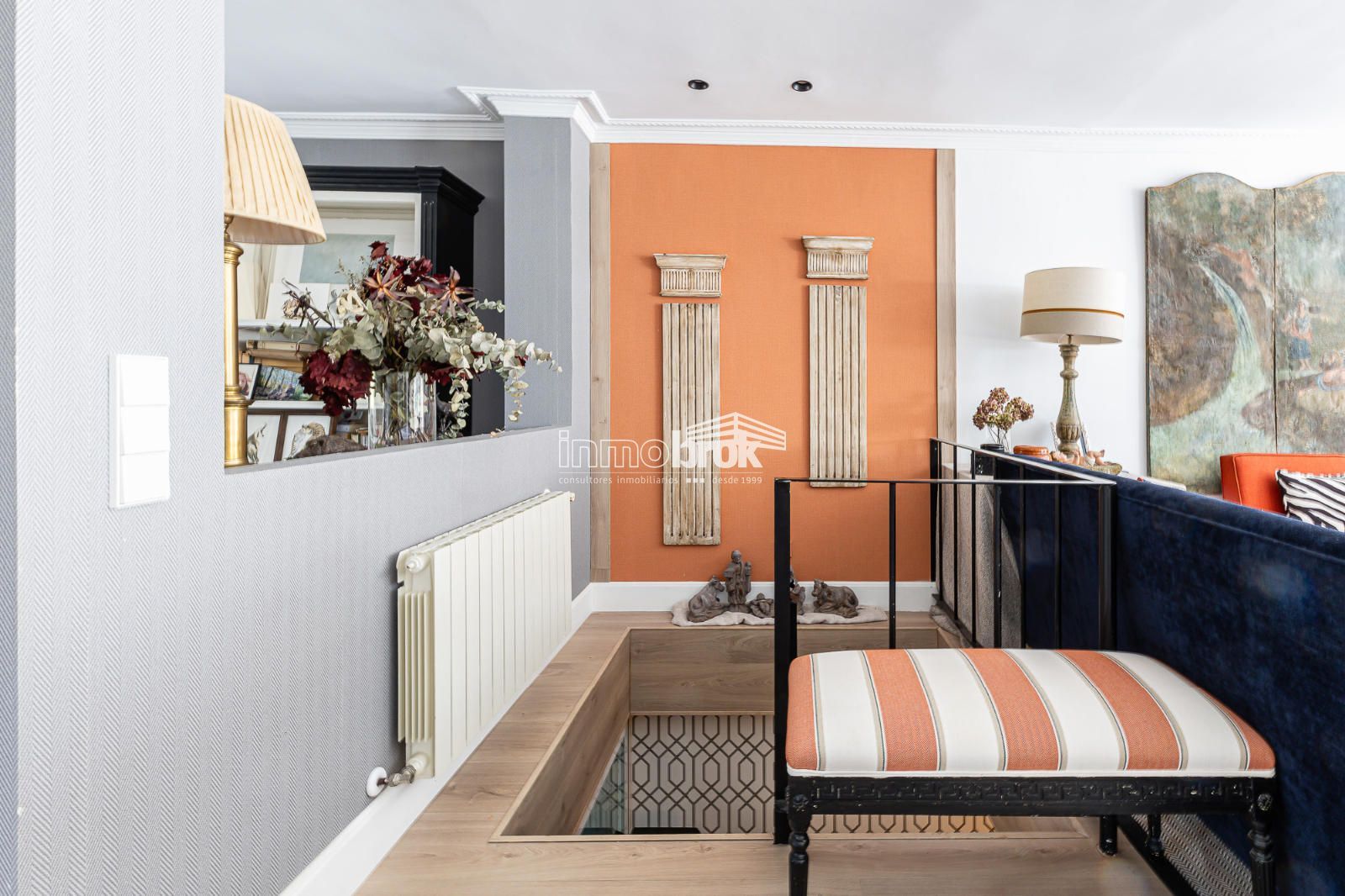 Distribución de la vivienda: • Planta principal: amplio salón con chimenea, despacho-biblioteca, baño de cortesía y gran terraza acristalada abatible en verano con acceso directo a la piscina y jardín privado. • Primera planta: 2 dormitorios en suite (principal con vestidor y terraza). • Segunda planta: buhardilla diáfana con baño completo en suite. • Planta baja: cocina con office, comedor, zona de lavandería, despensas, aseo y posibilidad de habitación de servicio.