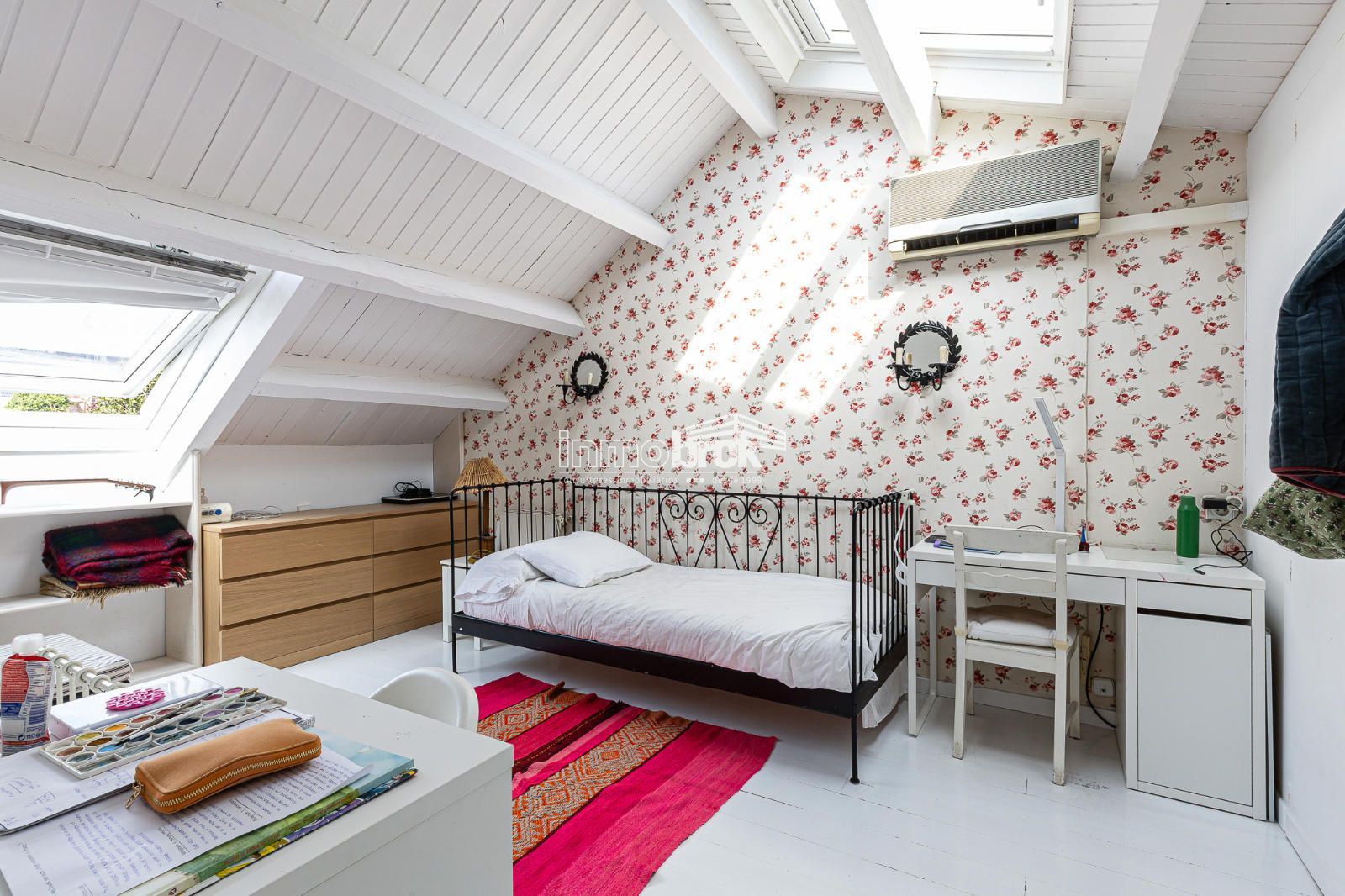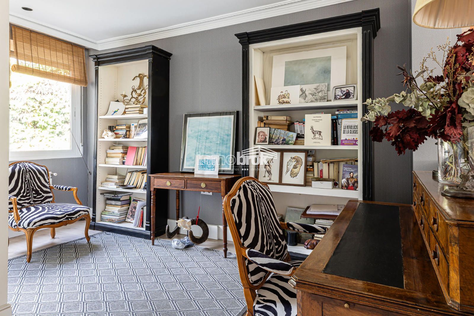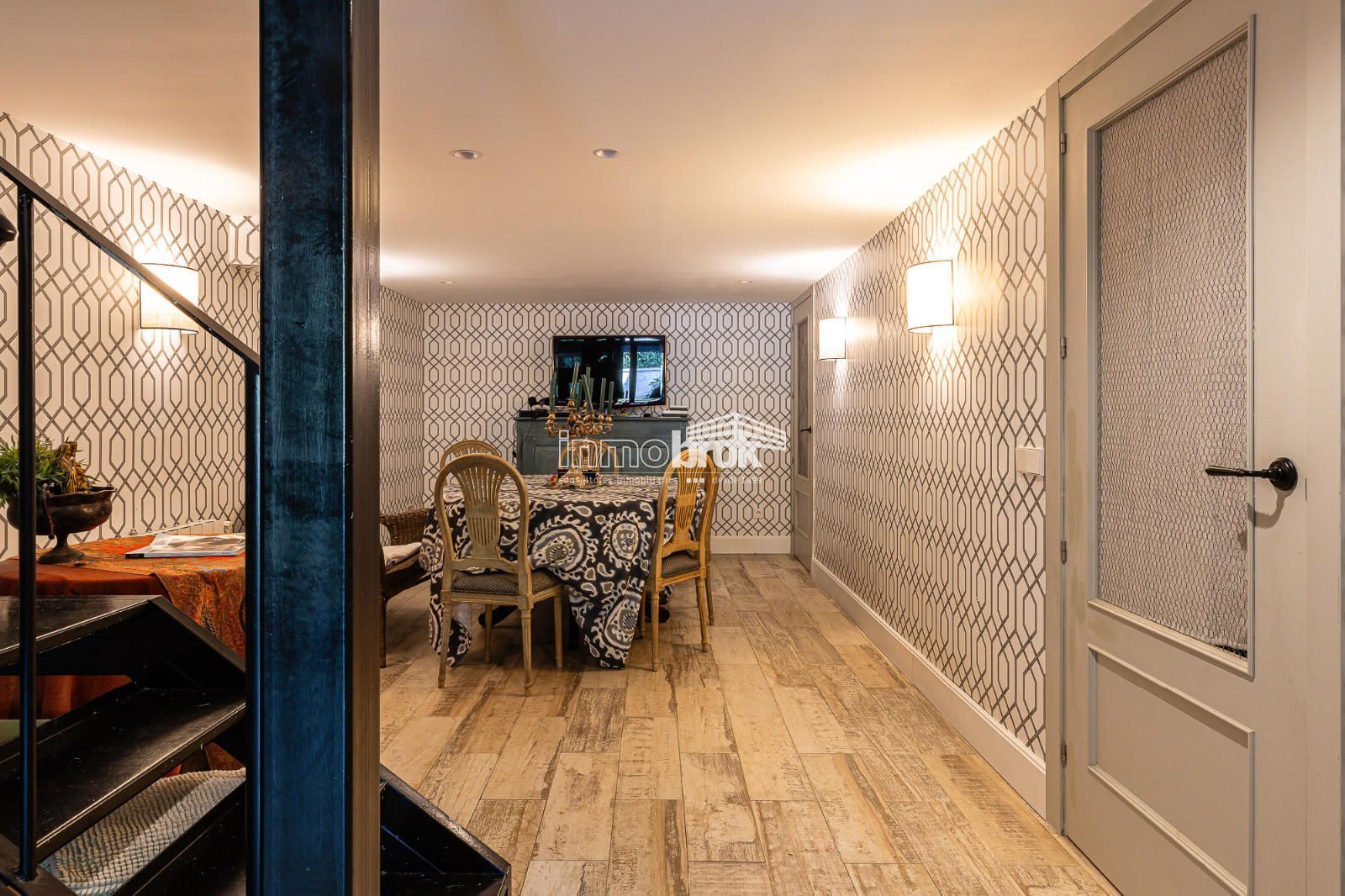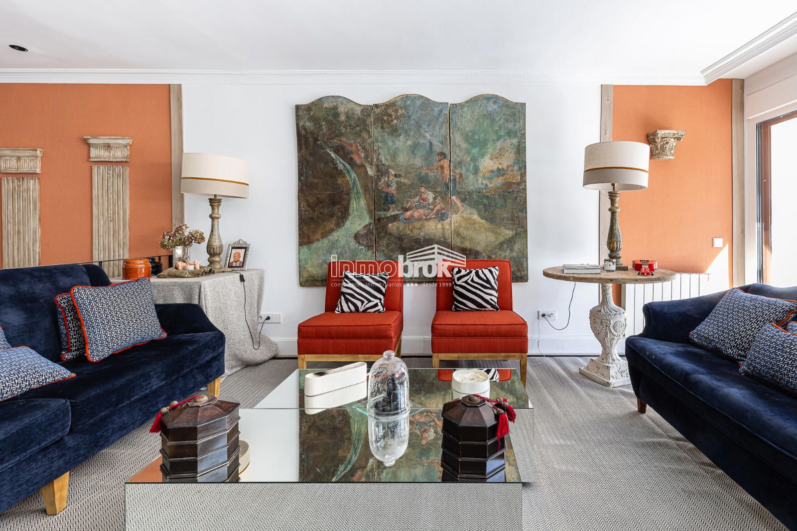 Distribución de la vivienda: • Planta principal: amplio salón con chimenea, despacho-biblioteca, baño de cortesía y gran terraza acristalada abatible en verano con acceso directo a la piscina y jardín privado. • Primera planta: 2 dormitorios en suite (principal con vestidor y terraza). • Segunda planta: buhardilla diáfana con baño completo en suite. • Planta baja: cocina con office, comedor, zona de lavandería, despensas, aseo y posibilidad de habitación de servicio.